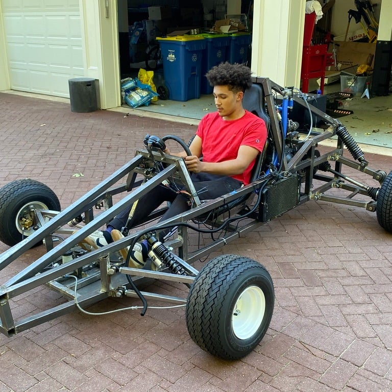 Welded frame and wired both the frame and engine, and constructed the car based on my own design